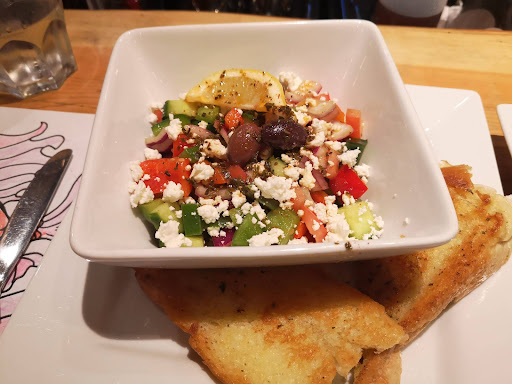 Read moreFirst off - I understand the staffing shortages so we expected service to be slow. And if you go on their Facebook page there is a post saying âif you have a heartbeat weâll probably hire youâ which probably explains our experience. We ordered pita and flaming cheese, and a greek salad. These came out fairly quickly but the salad had an inch and half of oil in the bottom. The cheese dish came with a big plate of cheese and ONE piece of pita. The server came by and asked if we needed anything and we said more pita since there was almost a whole plate of cheese left after the one piece was eaten. We also asked for a piece of cheesecake at the same time. We waited for an hour. For one piece of bread and a piece of cake. By then, our cheese was just cold oil in a dish⊠gross. We finally said we have to go so we either need our food or we need to leave. The waitress brought us our bill and said it will be another 5-10 minutes. She charged us for the cake and extra piece of pita. Guess she didnât feel like we deserved even a free piece of bread for our hour long wait. My husband asked her to take them off our bill since we were late getting back for our sitter and couldnât wait any longer for the food. She ROLLS HER EYES at us and says âKâ. Not one apology ALL night for the wait. For one. Piece. Of. Pita. We felt really disrespected at that point and still had to pay our full bill. Didnât get to eat the flaming cheese cause Iâm not about to eat cold cheese with a spoon (total rip-off). Sadly, this used to be my go-to restaurant in town but we wonât be coming back again. Iâd be better off driving to...