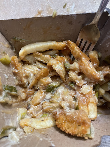 I went home and realized that there was no gravy on my poutine, so I returned to the restaurant to have it remade. When I pointed out to the two staff members standing around at the front that there was no gravy, they took it and went to pump gravy on it. When I asked to have it remade as it had been almost 20 minutes and was cold, one of the employees held the bottom and said "it's not cold, this is still warm.". I've worked in restaurants and the service industry for my entire life, I've never seen a response like that. When I asked to speak to the manager for a refund, they yelled from the front to the back for Jen. Then caught her on her way to the front and told her I wanted a refund. She didn't even say a word except to ask what I ordered, then handed me cash, even though I had paid with card. When questioned on why it couldn't be refunded to my card, I was told that's not possible.