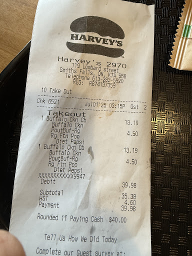 Read moreSo apparently a new owner. I haven't been in there in awhile. Floors & counter tops were sticky with pop syrup. No wonder, there was too much syrup in the pop. I told the owner " Gary" and he said " oh, I wouldn't know I don't drink it!" Glad to see you care about quality. Onion rings were disgusting, greasy breading & WET inside. What's sad is because there was a dispute about him charging me twice...said my tap didnt go through...but I heard it & he offer no proof that it didn't, anyways, the onion rings, they made me a fresh batch...🤷 and were still gross. The Angus burger at least seems fine except for the bun. Thought they used to have a kaiser bun...this is a soft bun like McDonald's so its kind of mushy once you put all those toppings on your burger. The girl who served me was nice but...other than that very disappointed. I have loved Harvey's & been eating there pretty much since they open in the late 60s, since I grew up in TO. Sad to say...wont be wasting my money in THAT Harveys. Even with a coupon it came to 10$. Way too much to pay for...