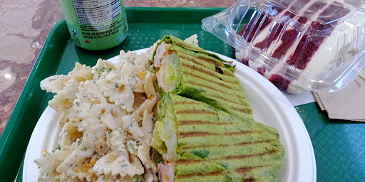 La jeune fille était seule, mais elle gardait son calme et sa patience. C'est le seul restaurant ouvert aux promenades de Sorel. Sur la photo: wrap au poulet cajun servi avec deux salades (j'ai juste choisie une sorte), une cannette de 7up diète et comme dessert un gâteau red velvet ❤️. Je me...