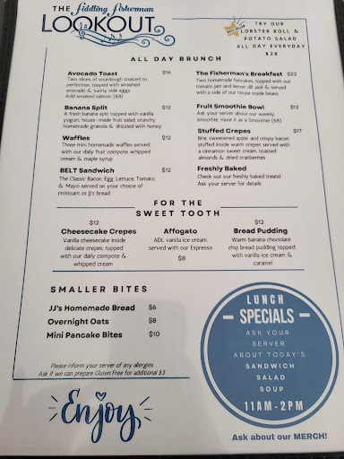 We decided to go back for dinner. The bacon wrapped local scallops were heavenly. Then had the seafood chowder for and it was full of scallops, lobster, haddock beyond and it was more broth versus heavy cream. The team at Lookout were amazing with service and attentiveness Julie the owner and Jen the chef absolutely care about the whole experience. Going to come back just to try other things on the menu. Thanks so much for 2...