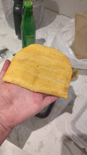 I ordered 6 Jamaican patties (3 chicken, 2 spicy, and 1 mild) because we showed up later in the day, but I would have gotten more, and I wish now that I could have. These were by far the best Jamaican patties I've ever had in my life and I've had homemade, authentic Jamaican patties before. The dough is clearly hand made and was nicely moist, the meat inside was spiced amazingly and tasted unbelievable. I nearly turned around to buy out the vegetarian patties! We ended up eating all but one on the car ride home as it seemed a shame to even try to reheat them.