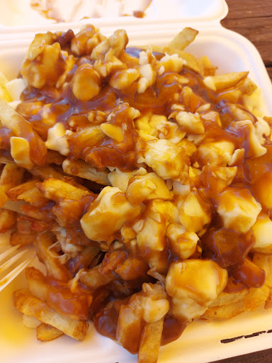 This isn't your typical overhyped and overpriced food truck, you actually get the portion sizes you pay for. A single poutine is large enough for two people, three if you're also getting a burger or sausage, and they were generous with the cheese curds. Service was fast, we ordered and were served within five minutes, though it was on a rainy day. It would be nice if they had some umbrellas or pavilion to set over the picnic tables, I imagine they'd come in handy on sunny summer days as much as they would in the cooler rainy seasons. Definitely will be back to try their other offerings whenever...