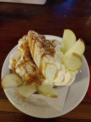 This place was rated very well compared to other but the rating seems to be a result of strong local support and not a reflection of quality. I ordered potatoe skins to start. I had asked if they were peelings or wedges. I was told peeling which is what I wanted. What I got was loaded baked potatoes half scooped out and filled with "stuff". If you google potatoe skins this is what you will find but its not true skins now is it.... for my meal I ordered the meat loaf. Hard to screw up right? Well, when it came smothered in a barbeque sauce I knew there would be trouble. Good meatloaf need not be insulted with condiments but this one was dry and tasteless. It needed BBQ sauce desperately. I could not bear to try and suffer through dessert at this point. My stay was done, I won't return. Aside from the quality, the portions were small for the price. My meat loaf cost 18 bucks. A 2 piece fish and chips will set you back 21 bucks. They should be thankful the server score them a star or they would be sitting at the...