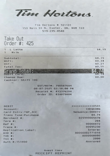 Read moreGood morning. i would like some help with the Tim Hortons in Exeter. last night, i purchased a coffee and tea. the owner informed me that a 20-cent change is in effect for hot water if i wanted more water, and if I have a problem with that, my answer was no i don't drink tea but some people might seeing how you suply free hydro and internet. he also stated the other day that a young man who was with me picking up money outside came in spent it received change and left. ok, i said if he received change, i didn't see this money found outside is a bonus, and free . he started, it's not my property, my money ok the go pick it up you can't expect others to do it for you and bring it in . then he stated, "Your friend pushed an employee too. my question now was the police called or one of the panic buttons pushed every till (cash reg·is·ter) has one . may i please see the camera footage, too? i asked if this happened. . this is when i was told im not talking to you anymore, so leave. i asked why you started the conversation, and it isn't a free Democratic country. no, this is my store not in here outside is . well, outside A democratic country inside. Is communist I guess something is wrong.. we all left. I went back dec 26 after spending $7.90 I was told to get out since i didn't buy anything by the owner and im no longer welcome get out l asked why it doesn't matter he said don't come back if you do it's trespassing. I believe he doesn't like people who are disabled or don't agree...