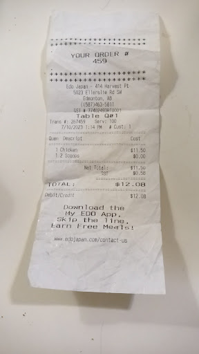 Read moreNever coming back to this place again!!! Got cold shrimp that tasted fishy, only offered to refund $2! Manager refused to answer phone because he was"busy"?? Run a restaurant not a social life! Staff didn't know what to do, eat here if you want to risk food poisoning!! We asked if they could just remake our meals without the shrimp and her reply to that was I don't think I can, I don't have the authority to do certain things. REALLY? Anyhow after watching every customer wait way to long for their meals ( we waited about 1/2 an hour after we placed our order ) to get ours. Supposed to be fast food? This USED to be our favorite Edo but not anymore! The customer service sucked! After being told the manager was on his way but told she didn't know how long he would be? About 1/2 hr went by and still no manager, she refunded our bill!?!? Totally confused as to why this just wasn't done in the first place? Now they have customers and friends that won't return to this location and a bad review! Felt like they didn't really care about their customers! This restaurant was total chaos tonight, seemed like the employees were messing...
