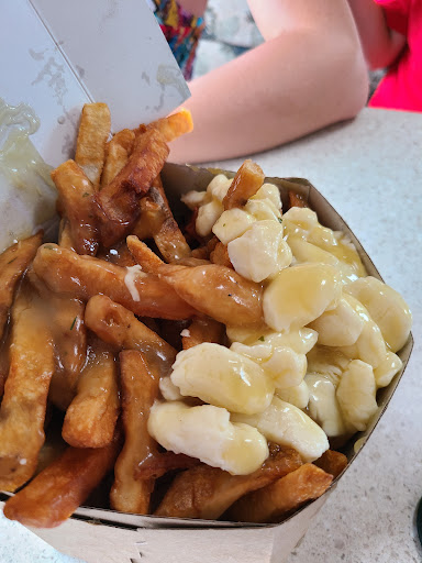 Had this place recommended to me by a friend who loved going there as a child. It definitely has the look of a classic roadside snack joint, almost has a seaside vibe. The staff person who took my order was friendly, but the food pickup experience was unpleasant… having a dedicated pickup counter and a perhaps a microphone&speaker to call when one’s order is ready would make it way better. And the food— we had regular poutine, 1pc haddock fish&chips, and a couple of cans of pop: $40 once taxes and tip were added in. This is more expensive than average. I also wouldn’t consider it good value, because the gravy— while tasty— is a translucent gelatinous greenish-yellow, the fries with the fish were almost certainly reheated, and the fish itself was one of those squared-off portions that looks like it came from a supermarket freezer. If you’re stopping for a decently-priced, generously portioned ice cream on a sunny day, you can’t go wrong. If you’re looking for a reasonable-value lunch… I...