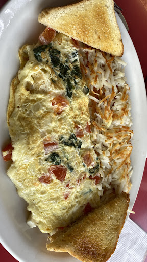 Read moreNorth American Diner. Simple and solid food that is low in quality (compared to European food) and, for what you get, kinda overpriced. You can't trade the hash brown (fried potato schreds) for something else, besides a plain tomato. I would wish for bell pepper and avocado to complement. The french toast, well, was very thin coated in egg (if at all!) and barely any cinnamon. The syrup is a flavoured sugar syrup with lots of additives and preservatives. Wouldn't have it again. Here maple syrup would made much more sense as we are in Canada! I'd also wish for organic eggs...