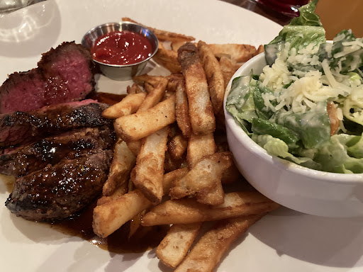 Ā Ā Ā Read moreVisited for dinner and it was a very busy Fri evening that felt festive and lively. Despite the business, service was overall prey quick and efficient. We were seated right away when a table was available, menus and water was supplied and we were soon able to place our orders for drinks and food. The wait for drinks seemed a bit long, but we could see that the only bar tender working was busy with lots of orders as it was a full house and as soon as our drinks were poured, they made it to our table pretty quickly (we were seated near the bar and could see all the activity). The steak was beefy and had a nice char, and fries were nice and crispy. The Parmesan chicken was tender with a nice crust, and the truffle sauce matched the side of gnocchi. The side Caesar was a bit over dressed for my personal preference but I can see it being perfectly fine for those who like a saucy salad and it was very tasty with nice garlic notes. We left very full and very happy. This lively restaurant is definitely worth revisiting whenever we are in or driving through...