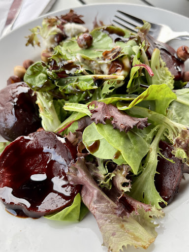 The main was okay in terms of flavour but the presentation was very poor and the portion size smaller than what I would have expected for $38. The steak, which was not tender and very hard to chew through, was swimming in some sort of very watery sauce (my guess was maybe au jus mixed with what seemed like a lot of blood from the steak). The butternut squash ravioli was sitting in a cream sauce on the same plate, and the sauces just ended up mixing/blending into an unappetizing mess of creamy, bloody, au jus.