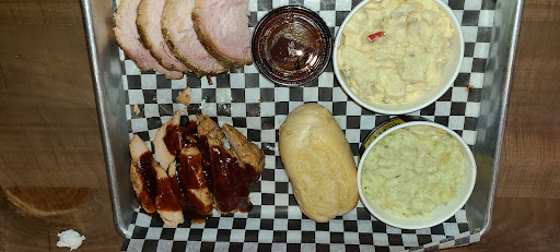 Prices where really up there $17.99 for a plate. One meat, a roll, and two sides. We got their "competition plate" and "poultry plate" $19.99 each. Their competition was brisket and burnt ends. Both were super dry and no flavor. There were spots that did have pepper on it but not much else for flavor. Where is the smoke!!? The poultry plate was better. The chicken and turkey were both moist and very flavourful. However I was very disappointed in the portion sizes to price ratio. You get more sides than meat. This is very disappointing. If i came to eat just the sides then that is all i would have ordered. A side is just that a side. It is disappointing to walk out still being hungry after spending nearly $50. Mac and cheese was over cooked noodles with a pasty cheese sauce, BBQ beans tasted weird and peppery, potato salad was ok, and the coleslaw was the best I have found up here.