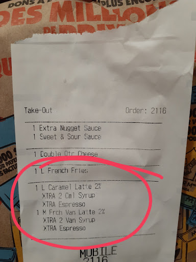 So you have staff to make food, and staff to man the drive thru, but you cant hand an order over the counter to a customer waiting in the lobby? We could use the automated kiosk to order....