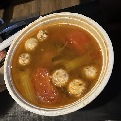 Ordered take out as I am traveling through town. I have never been so angry receiving an order from a restaurant. This is honestly a scam. Ordered the Tom Yum Soup — it came with no noodles. The soup is 6 mushrooms, a couple cuts of celery, canned tomatoes, and a single shrimp. This was $18.