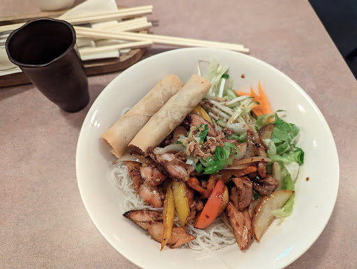 Read moreCame here for my birthday dinner and thought we would try a new place. Walking through the door is a cute dining area with a nice atmosphere. The place is clean, the seats are comfortable. The music is a bit repetitive with streaming ads randomly thrown in. The lady serving us seemed very distracted or just not wanting to be there tonight. There was only one other couple in the dining room with a few to-go orders during our time there. We all ordered tea, got the tea, poured the tea for 4 small cups and the pot was empty. It would be another 20 min for more hot water, pretty sure she forgot about it. She was ok at serving but could add some smiles or a bit of banter to make the experience better. The food came out in a decent amount of time and was just ok. I had the five color vermicelli, with the fish sauce it was ok. I had to add a bit of soy sauce to give it a bit of flavor. The meats in it were good except the beef, it tasted a bit off. The spring rolls that came with the dish were very amazing. (the picture I'm posting was my wife's chicken lemongrass, she has the same opinion about her dish) If you're really wanting Vietnamese food and you're in the area then sure you can go here but I wouldn't go out of my way to eat here again. There is a lot of choice in this part...