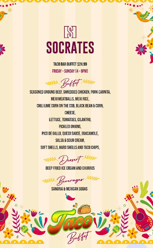 Read moreMy wife and I went to Socrates at about 1:30 pm for lunch. Their were only a few people so no rush. Coffee was provided immediately but the wait for lunch about 20min. My wife’s meal came with a side of soup. She ate a couple of spoons then ate a bit of the main meal. When she returned to the soup she thoughtful there was an eye lash in it but when she removed it, it was about a 4 inch black hair. Gross. We pointed it out to the waiter who was quite revolted about it. Offered my wife another soup(ugg) or side. She declined and the waitress apologized and took the soup away. Later when she brought the bill she said she had waived the cost of my wife’s coffee. I the went up to the counter to pay and told the waitress that it wasn’t her fault and politely suggested the least they could do would be to waive the cost of the meal. She was not pleased with this so I said I would like to talk to management to which she grudgingly added the coffee back on and waive the one meal cost. From that vantage point I could see into the kitchen and saw three cooks all with black hair one with a cap and two with no hairnet or any protection. The meals were a little expensive for a simple lunch and were quite bland. Needless to say we will not return to this establishment and will ensure our friends know the reason...