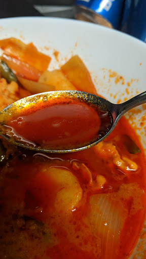 Price aside, I asked for medium spicy and there was just a huge layer of chili oil on top. Every time I mixed it in it would rise to the top immediately. I don't know how to eat this without getting sick, there's so much oil on this. Every other Thai place I've ordered spicy at adds chili flakes or sauce to increase the heat. I've never seen any place just dump oil on top.