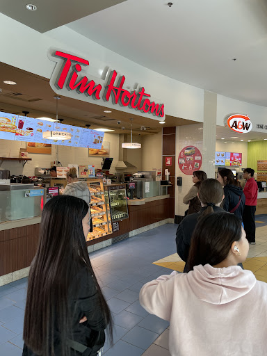 I think I can scarcely remember a worse Tim Hortons experience. They were absolutely slammed on a busy shopping day before Christmas but we lined up anyway, assuming it was volume. It took SO long for the two staff members to take and clear orders. The crew member on the sandwich line was working in slow motion, and yet all of the items we received were messily constructed and smushed awkwardly in the bag. They were out of crispy chicken and wedges at noon. So they were clearly failing to plan ingredient management. Wedges we got were inexplicably damp. Bag ended up dripping in grease; looked like it had been stepped on. I don't understand the management decision to only staff at two team members on one of the busiest days of the year in shopping malls, during the lunch rush. I get that times are tough, but if you don't want to be in the fast food business then don't be in the fast food business. I watched people leave the line while we waited for our lunch. I wish I'd made the same choice. Next time, if I want timmies, I'll know it's worth the drive to some other location....