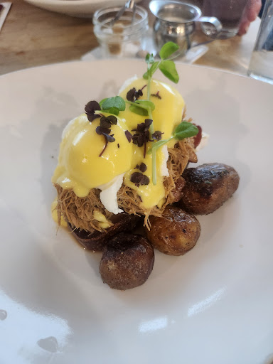 The service was great, but everything else was just 'meh.' I ordered lobster eggs benedict. The eggs were over cooked. The yokes were cooked completely through. Simple thing to get so wrong for a breakfast restaurant. The lobster was a few shreds placed on top, and with the size of the menu, and how much was on the plate, you just know it is not fresh. There would be no way for a restaurant to economically serve so little of an ingredient and keep it fresh. Plus side is that you could not tell it wasn't fresh because there was so little of it, you couldn't taste it anyway.