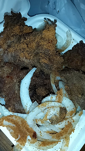 Now down to actual food. After asking for three different items which weren't available. I went with the suya meat which was about $24 for a small styrofoam container. The meat it self was heavily seasoned which wasn't the issue. The meat it self was inedible. I couldn't even bite throw it. It was like rubber. Pulling on it I would of ripped my teeth out. Thought maybe it was the one piece. Nope it was all of it. Wasted my time money and hunger.