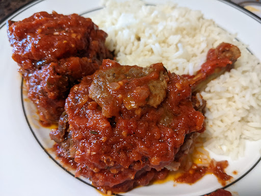 The stewed chicken was zero, it appeared like it was sauced up with tin tomatoes not properly fried or one of this canned tomatoes.