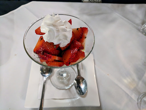 Dessert was really the cherry on top of the whole experience, rich crème brûlée custard topped with ripe straweberries and whipped cream and just a pinch of black pepper to set off the sweetness of the berries.