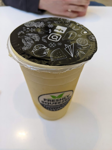 Read moreLove the strawberry, peach juice with ice. Medium is 10 dollars tho.... this was my first experience The other time I went back.... I was standing to the side with my friend waiting for my drinks and I guess I was near the entrance were they had to go to get Into the back , and this big fat guys comes up behind me and says MOVE! And I turn around and said, excuse me ?? Turns out it was one of the employees . The guy had no manners what's so ever or had any right to speak to me like that, and not one of the other staff members did anything about it even tho they all witnessed it. Will never go back there. Place is a joke. Also walked passed there later that day and saw the same guy eating while making a customers drink. That's not supposed to be happening. Health and...