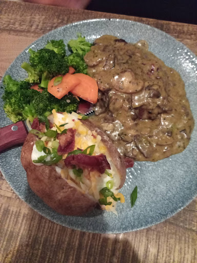 Read moreValentine's Day dinner with reservations for7:00pm, special accommodations requested, not read or considered initially but We insisted that I needed a booth or half for my injured knee. Hostess did agree after we waited for a few minutes, for a table to be cleaned. All good for seating now, we had a great view of the big screen TVs and I can sit comfortably on the half bench. Chairs are very, very hard for me to sit upon for any length of time. Our server was Collen & he did take care of us!đđđ Good food. Usually very busy but got slammed with takeout orders tonight as well. We ordered the special couple meal which is 3 courses for a set price. We shared a spinach dip and Collen accommodated my request for nacho chips, & veggies instead of the pita bread- Nioce! Gluten free option for me. It was delicious. We both ordered the steak đ„© with mushrooms, double veggies no starch. My steak was cooked beautifully but a bit cold, my Man's steak was Icy cold so that dinner was sent back. Collen advised the manager and she came over and offered a new dinner. My man was okay to wait the 20 minutes for a new hot dinner. He was happy with his dinner, upgrade with the creamy mushroom sauce & cooked perfectly. Dessert was awesome, Carmel cheesecake & yes it's baked!! The manager also offered us a discount on our total bill which was fantastic, not expected but very much appreciated. Our V'day date was a success. We enjoyed ourselves and the staff made up for some minor changes that really made a difference. Thank...