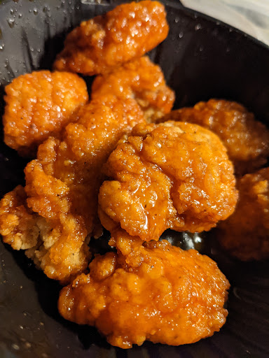 Read moreWe have bought pizzas here on a regular basis for the past year. In general, the wait times are at least 45 minutes if you walk in to the place....so we started placing online orders for our past two orders (we usually buy for 60-70 CAD *twice a month). Last time, our first online order, I asked them how to customize an order, which is often impossible to do online. The employee told us to just place the order online and call in to customize the order, so that is what I tried to do today. I placed the order online (for pick up in thirty minutes) and called the store immediately for minor changes (i.e. to remove tomatoes from a Veggie lover pizza and no sauce on half the wings). I was put on hold for 15 minutes before I tried to call again....I explained that I was calling about an order with pick-up in fifteen minutes but was put on hold again...for twenty minutes....before I finally hang up and went to the restaurant. The manager (Jeffrey with a K) explained to me that sometimes they are just busy (I saw three cars in the parking lot, about three tables with dine in customers and one more customer waiting for take out wings...a lot of space in the parking lot compared to our other visits). He then charged us full price for the half-cold pizza (the one I finally agreed to take)....Pizza is usually ok in this place but I would have expected more from management especially since I explained that we do take out from the restaurant on a regular basis. Will definitely...