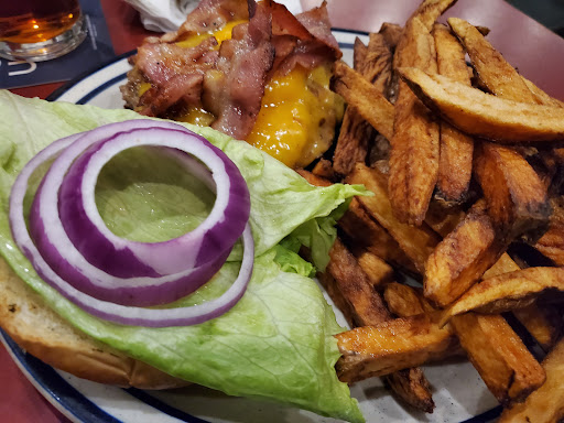 Their burger is okay, it took 45 mjnutes and tonne of "sorrys" but it arrived... the cook needs to flatten the patty. It's basically a meatball with stuff on a bun. JUST GET A PRESS!!!