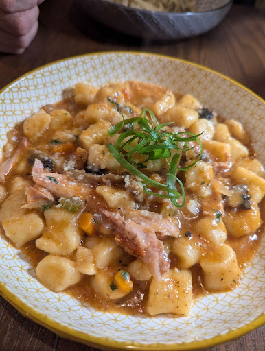 Next our entrees. My husband had the gnocchi alla amatriciana and I had the braised rabbit gnocchi. The gnocchi was homemade and delicious. They weren’t too heavy and perfect size. They held the sauce nicely, and there was a perfect proportion of pasta to sauce. I dislike when a restaurant drenches the pasta in sauce. Like they have something to hide. My husband’s dish had a wonderful heat to it but not over done. The braised rabbit was a new choice for me but it did not disappoint. We both finished our dishes without that heavy feeling.
