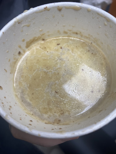 I ordered breakfast for someone else and my dog's first pupichino. When he handing me the drink, a cold java something, I was distracted by my dog having his first pupichino and BEING DISTRACTED, I grabbed the drink by the lid and squeezed it to grip it. I SQUEEZED the plastic lid of a heavy drink and it fell into my lap and seat.