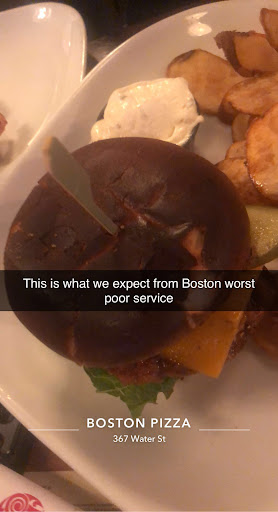 My boyfriend and I went to watch the Would Junior game Saturday night seating close to the bar. Not only was the server not very friendly but it seemed like she was more interested in having having a conversation with her friends at the bar. My boyfriend how to go up to the bar and remind her of our drink order she didn’t even apologize and finally brought us our beer. When we wanted another one it took her a long time to come over because she was still too busy chatting with her friends. We had one more beer and then she came over and told us that we had to leave because the section we were in was reserved. I don’t know who Boston Pizza hires as their employees but I or my boyfriend has ever had such a bad dining experience. I really wish I could give the restaurant no stars and just this review. We won’t be going back there again. Management needs to review their employees more closely. I honestly think that poor management is the result of Hiring such...