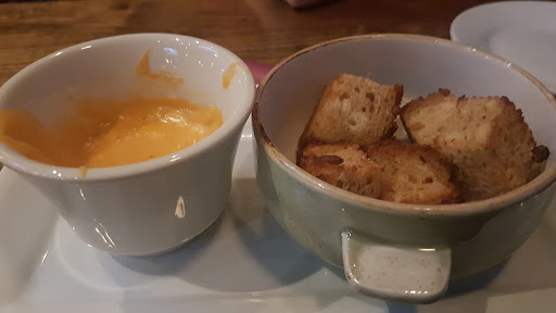 Read moreI was glad that I had made reservations because there is absolutely no space for people waiting. We had to wait for the server to clean the table (despite the reservations ) so we ended up sitting on wet chairs and putting our things on a wet table. The drink that I asked to server to recommend, was disgusting. She replaced it. Both took far too long to get. Service was terrible. I read the reviews beforehand, and read "small portions " in many. "Small portions" is a generous statement. I had to get something to eat when I left. Not only were the portion 's small, but my steak was a huge disappointment. I usually don't complain, but the whole experience was disappointing. I told the server I wasn't happy with my meal, that I left on the plate....minus the potatoes, and she just smiled and said "I'm sorry". This is my first review I've ever written but I feel like it's not a place for dinner.....maybe if you just want to sit at the bar ( and not hear your guests) because of the extremely loud "one man band" and have a few drinks, it would be a different experience.