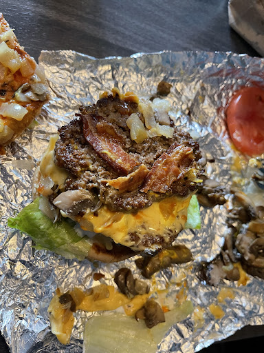 Let's talk about the food. The milkshake was really good, one of the best around for sure, and lots of flavors to choose. The fries were clearly hand cut, really well seasoned, and the smell from the Cajun spices were amazing. The star was of course the burger, large, hefty, and once opened oozing with cheese. I got the all in variant. The toppins were very fresh. Even the tomatoes was crunchy. And the bacon.... I have not tasted bacon like that at any fast food spot. This was some premium bacon taken from the are of his highest majestys stock by far.