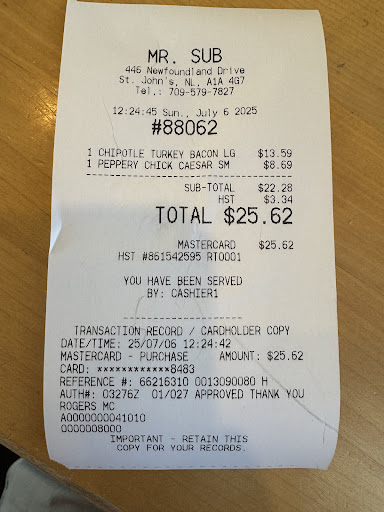 Someone needs to review the worker. They are so angry all the time. Donât get me wrong, I doubt anyone wants to work at Mr sub but come on. The women working there was throwing the utensils around and so angry. The next day I went again for my lunch and the man working there was huffing and puffing every time someone walked through the door. He was way more frustrated. My roommate says every time he goes there, the staff is so angry and rude. I have to agree. Not to mention, itâs not going to hurt to throw on some veggies. I ask for onion and green pepper and they give me three...