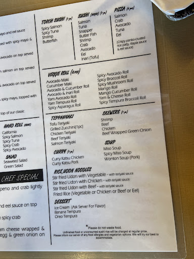 Read moreThe all-you-can-eat price is pretty sensible for lunch time. $19.99. I had a green tea which I was charged for. Always feel like that should kind of be included with all you can eat. Anyways I had asked for no tempura bits in my sushi as I find a lot of sushi places are putting to many fried bits to fill up the rolls. My roles came out with a boat 60% fried bits. I sent them back and asked to have them remade. The Green dragon came with four pieces and was probably the best thing that I ate. I also ordered a shrimp to tempura. It was exactly the same as the green dragon except for no avocado on top. I ordered the new green onion wrapped with beef. The ratio of green onion to beef was not good. I did enjoy a small drizzle of sauce as it was not drowned in it. I had the wonton soup and the miso soup. Both were bland. I ordered the crab tempura and it was way over battered and close to being crispy enough. I feel bad giving this place a bad review because I have enjoyed sun sushi here in St John's since they open up their location downtown. This location open up close to where I live and I was very excited. This is the second time I have attempted to eat here and it is not good. They are packing their rolls with wheat fried bits to save on cost. The quality is definitely lacking here. The table I also said it had soy sauce built on it that was not cleaned up. One good thing I could say is that the service is good at this location. I know that the downtown location has a reputation of having bad service but I would rather have bad service than...