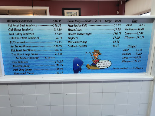Read moreAside from the amazing fish/chicken fries dressing and gravy you would expect, the menu has much more options to offer. The breakfasts, like all meals, are great quantities and let you choose how you prefer your eggs and offer 4 different meats. The toutons are also great. And if you love great breakfast, ask for the breakfast card. Any breakfast will give a stamp once per day so if you visit often you can get a free classic breakfast really quick. (2 eggs, hashbrowns or beans, meat of your choice and I believe the meat choices are ham, bologna, sausage, or bacon. Plus toast.)