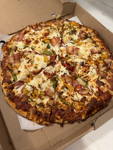 Read moreStill 2 stars. They have stepped their slice game up but still use the same absolutely disgusting bacon which I suspect comes from Halliday's meat market. Buy better bacon for the love of God. It stinks, literally, and ruins the pizza.