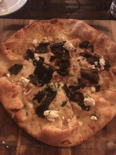 With all that said, my mushroom goat cheese pizza was delicious. The thin crust had the perfect ratio of toppings to crust ratio and it was the correct temperature. I happily noted they had a pizza of the day on their menu, something to keep things fresh for everyone. There was only a minor slip up with one of the cheques in our large group and that person went back the following day to try something else on the menu, so all was well. I would recommend this restaurant to anyone but with some changes for...