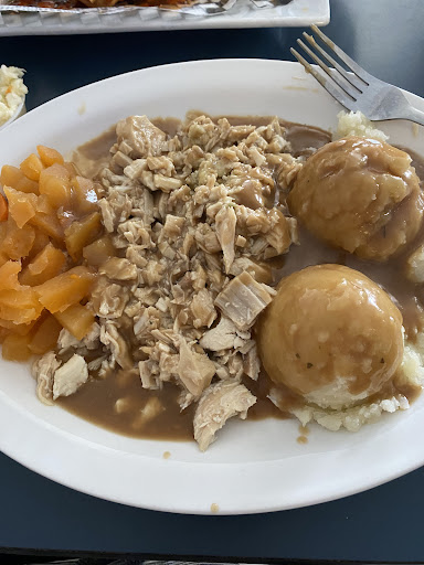 My husband had plate #4 of Chinese food and he said it was really fresh and tasty. I had a gluten free club with fries. The top layer of bread was sliced in two, which is typical for a gf sandwich, however, the bread was broken into three pieces. So six seperate pieces made for eating a very, very messy club. It was also dry and when I was finished I was still hungry due to the lack of turkey on it.