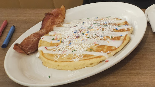 Read moreWe showed up during a Saturday afternoon rush, due to how busy it was I was skeptical about staying. To our surprise we were sat immediately with friendly smiles in a perfect spot. Our server was clearly very busy but that didn't stop her from being polite, friendly, prompt and professional. We ordered our food, blinked and the food was served. Hot, fresh, everything cooked amazingly perfect. The pancakes tasted like home, but a beautiful bed and breakfast out in the countryside kind of home. Sausage and bacon and eggs all cooked to perfection! There was ample staff, I was pleasantly surprised at how many staff they had working - which really helps the facility run faster, smarter, smoother and more enjoyable. The only thing I noticed that was a bit unsettling was the washrooms, the woman's washroom is in serious need of a DEEP clean. I can tell it's kept up but as you look closer you can see that the spots that never get touched are getting filthy. I highly recommend getting someone in to deep clean the washroom.