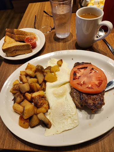 St. Thomas has at least 5 or 6 good breakfast restaurants and now it has a GREAT one. The new Stacked Pancake and Breakfast House has only been open since the fall of 2023. I visited for my first time on a Thursday around 1 p.m., thinking it might be easier to get a seat. I had a modest wait in line at the door but was seated about 10 minutes after arriving. The place is clean, fresh and bright. Staff are great... helpful, cheery and engaged. The menu is a big WOW. Lots of choices and all of the plates I saw served to folks seated nearby looked impressive. Prices are fair, too. Not the cheapest, but the difference shows in quality. And the house-made strawberry jam is an edge above all others. My menu choice for this late lunch/breakfast meal was steak and eggs. Very tasty. Folks seated nearby enjoyed omelettes and mushroom burgers. They, too, seemed happy with the food and friendly service. No question, I'll be back soon for more. UPDATE at Oct 20 - 3 visits completed here and my initial impression is unchanged. Good people. GREAT menu. I tried a burger at lunch today, the Friday special. Excellent and easily in the running for best burger in town. UPDATE at March 12/24. Weekly visits (at minimum) are a must. The food quality and variety and smiling, eager staff make Stacked my #1 morning...