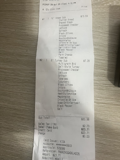 Read moreI placed an order for a cold cut combo sub through the mobile application and proceeded to the store to collect my order. While observing the preparation of my sub, I noticed that the employee responsible for assembling the sandwich initially only added salami, omitting the other two types of meat (bologna and luncheon meat) that are typically included in the cold cut combo. Upon inquiring about the absence of the other meats, the employee initially asserted that the salami contained all three types of meat. However, upon further prompting, he added the bologna but still neglected to include the luncheon meat. Despite my repeated inquiries, the employee continued to assure me that all three meats were present. Consequently, I decided to accept the sub and leave the premises to avoid causing any further inconvenience. However, I have resolved not to patronize this particular establishment again and advise others to exercise vigilance in ensuring that their sandwiches are...