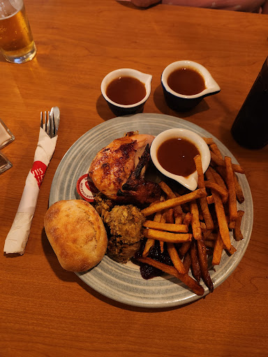 Read moreIâve heard a lot of good things of this Swiss chalet since it changed owners but tonight was a horrible experience. The food was good but the service was awful. First of all we got seated and had to wait 30 minutes to place just our drink order. At which point we were also ready to place our meal order as well. While we waited for the food the drinks finally came out and my drink was not correct and my moms tea cup was clearly not washed. It had tea stains all on the inside of the cup and the handle had left over residue of food. We let them know and got a new clean cup. It took another 20-30 minutes for our food to finally make it out at which point the forgot the appetizer that we had placed and brought it out 10 minutes after we got our entrees. Also my mom ordered the chicken darn meat mean white rock wand gave her fries. I spoke up for her and all they said was âthey ran out of rice.â Th eh didnât let us know that until I said something about it. Anyways we eat the mean and we havenât got asked if the meal was okay from the waitress or if we needed anything else. Also not to mention we also were not given any utensils and had to ask for them. Once we finished our meals we ordered desert because there was only two tables left in the restaurant and it came out correct but my goodness the service that we received was not so great tonight. I saw two familyâs walk out without paying because the server was so bad at what she was doing. I will not be going back to this location and will be only going to the London locations. Do better Swiss...