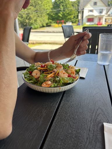 Our first stop over the Canadian border into this little town was this restaurant. A pleasant atmosphere, air conditioning inside, deck seating outside, and friendly staff. Brittany, our waitress, was especially good and even helped us learn about the Canadian currency and the various coins. Service was quick and my cheese steak sandwich was made with real brisket! The staff spoke perfect English, possibly better than mine. In fact, it seemed to be the most spoken language in the place by the staff. We did not try the Pizza as we are from the land of pizza so nothing could outdo our home. I did not have poutine but I found the Fries to...
