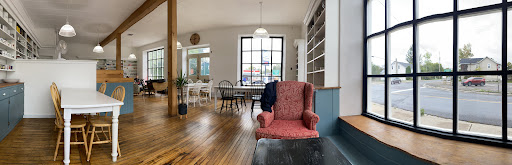 The broad shouldered limestone building is something of a landmark in the area, open and lively with this delightful café. Reviewers have noted the friendliness of the proprietors, and we agree. This was our first visit. 4 of us came for lunch, and our curiosity about the food and coffee options was graciously accepted. The daily special soup was a hearty, tasty split pea, and the accompanying freshly baked buttery croissant sandwiches were well composed and proportioned. The butter tart was appropriately slightly over the top sweet (they have to be); the date square more restrained, with a fine crumble with a hint of butter and salt. Espresso drinks were expertly made to order. Altogether an enjoyable meal, absolutely worth a detour if it's not on route (it's definitely...