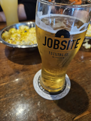 This week, we were in Stratford and decided to stop by Jobsite Brewing Co as we hadnât visited before. When you walk in, you're greeted by the counter where they serve drinks, as well as a stone pizza oven. The seating area is right in the heart of the brewery, next to the steel vats where the beer is brewed, giving the space a lively atmosphere. They have a fun game area with pool and ping pong tables, and the place was packed during our visit. With complimentary popcorn to snack on and a wide range of beers on tap, itâs a great spot to relax and enjoy a good drink. I personally enjoyed their IPAs, while my wife enjoyed the apple cider on the guest tap. Jobsite Brewery is definitely worth a visit if you're in Stratford!