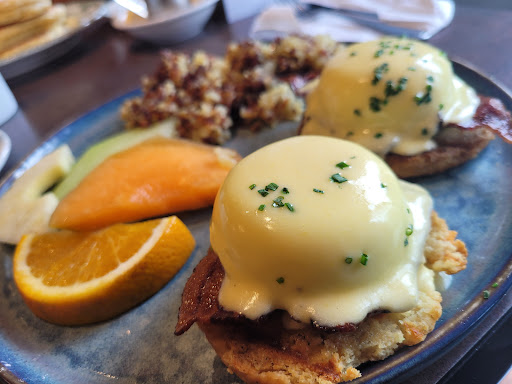 Read moreWe went here since we ran into poor service at the Best Western restaurant for breakfast. The menu here is great as it offers some different options for the casual brunch staples but still has the typical pancakes, French toast, Benedict for those who prefer simple. Prices are not bad, ranging around $12-20 for the entries. However, the cafe doesn't open (at least on Saturdays) until 8:30am. When we arrived at 8:50am the place was 80% full with two waitress running around trying their best to manage. A table near us with menus walked out since it didn't look like they'd placed an order yet. All in all, took almost an hour for food but the waitress did her best to keep us informed. While waiting we saw more staff arrive, by 9:30am or so they managed to get the patio open and the restaurant flow seemed less frantic. Overall, the spot is nice, the staff were doing the best they could. Recommend going mid-morning to this spot if they still are short staffed during the...