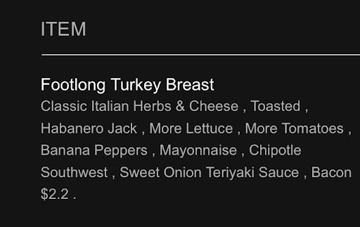 Read moreThis is the 2nd time I've tried ordering from their app for pickup. The app is horrible and errors out many times. I've added coupons via the app which end up not showing on the order when I go for pickup. Today is the 2nd time I've used a coupon for 6 cookies and the restaurant said they never got it on their order and therefore I don't get them. Absolutely horrible service and app. Prices seem to be only going up and the odd time they have a coupon it won't work properly. I think we will no longer be ordering from Subway anymore....