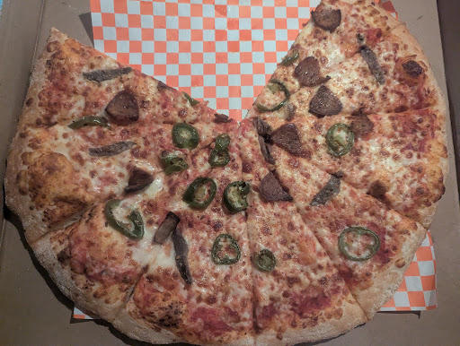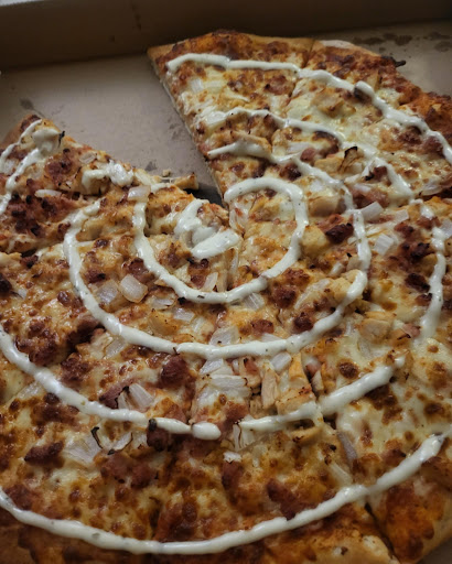 This franchise has decided to put about half the toppings on anymore, it used to be a decent place. They even cut pieces of certain toppings in half. They don't spread them to the crust so most slices are half dough.